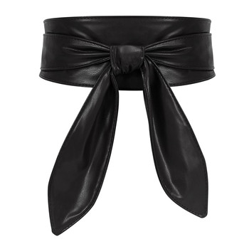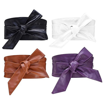 Custom Woman Wide PU Leather Belt Obi Belt Self Tie Cinch Belt Wrap Around Bowknot Waistband Bright Color for Dress